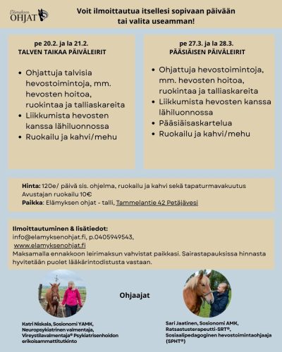 - ERITYISTEN PÄIVÄLEIRIT HEVOSTEN KANSSA